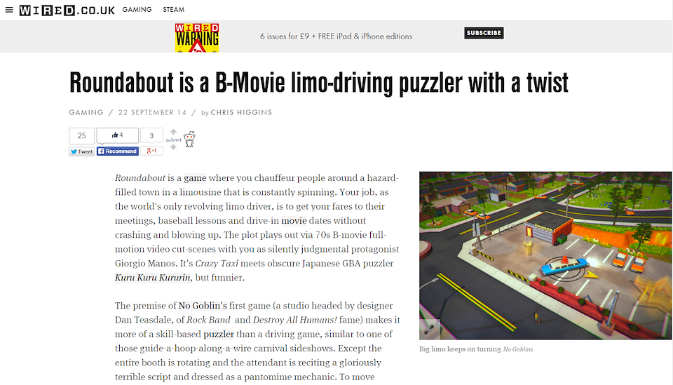 Worked as editorial assistant on the Wired UK website, proofing copy, producing online magazine content and writing stories of my own. Focused primarily on science and technology, though covered larger gaming stories that would also be relevant to the audience.