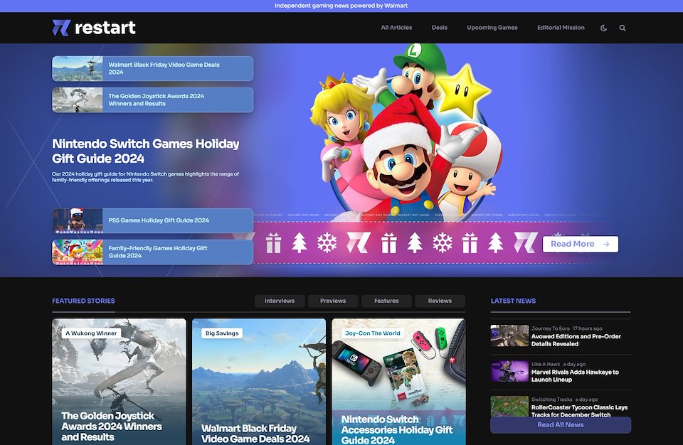 A gaming editorial site created in collaboration with US retailer Walmart, featuring cross-site functionality, direct sales funnels, and associated social platforms.